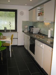 Küche ist voll ausgestattet mit Backofen, Ceranfeld, Kühlschrank, Mikrowelle, Kaffeemaschine, Geschirrspüler. Geschirr und Töpfe usw. sind ausreichend vorhanden. Tisch und Stühle.